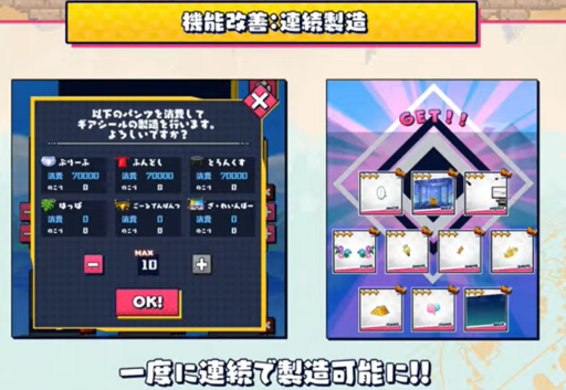 釣り具:レベルを上げるとモンエルの生産量 UPBOX:最大保存量 UP